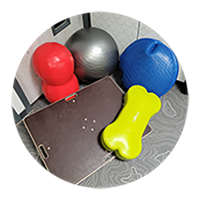 La clinique est équipée d'un laser, d'un électro stimulateur et de petits matériels de rééducation (ballons, planche de proprioception).